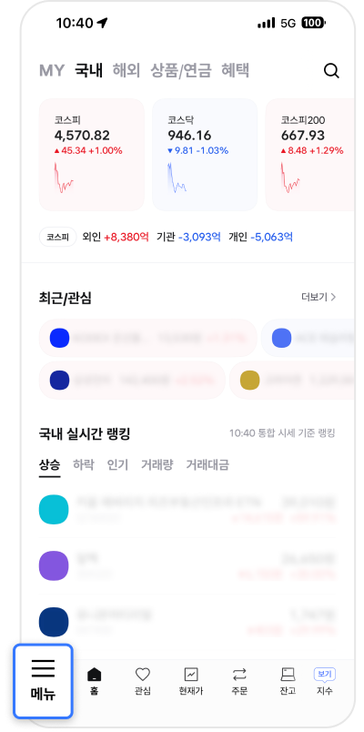 • 원하는 업무의 메뉴 위치를 알려 드리고, 한국투자 앱 메뉴로 연결해 드려요.